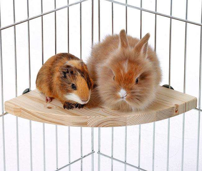 Sitzecke aus Naturholz für Nager. Befestigungsmaterial zum Befestigen am Käfiggitter ist im Lieferumfang enthalten.