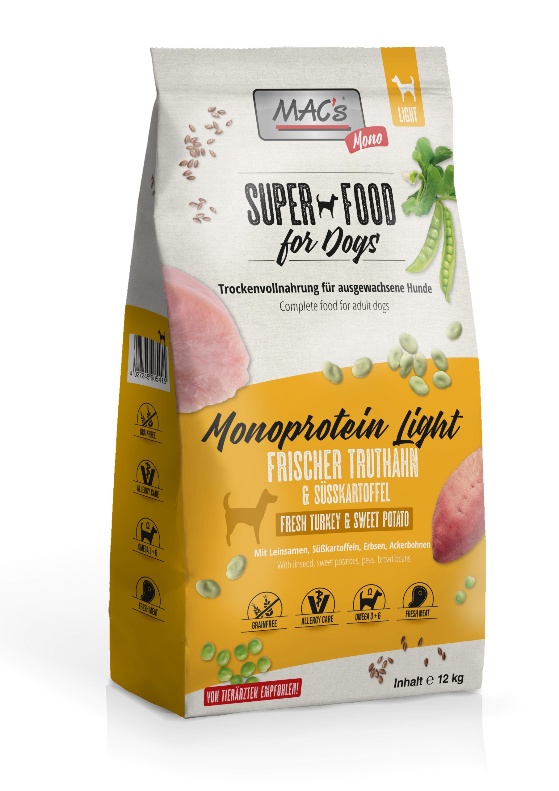 MACs MONO SENIOR / LIGHT wurde speziell für ältere oder übergewichtige Hunde entwickelt. Bei älteren Hunden verändert sich langsam der Stoffwechsel. Für die Gelenke wird mehr Glucosamin und Chondroitin benö-tigt. Der hohe Fleischanteil und die Kombination aus Obst und Gemüse sorgen für eine sehr bekö-mmliche Ernährung. MACs MONO SENIOR / LIGHT ist ein Super Premium Produkt, das sich die Natur als Vorbild genommen hat.
