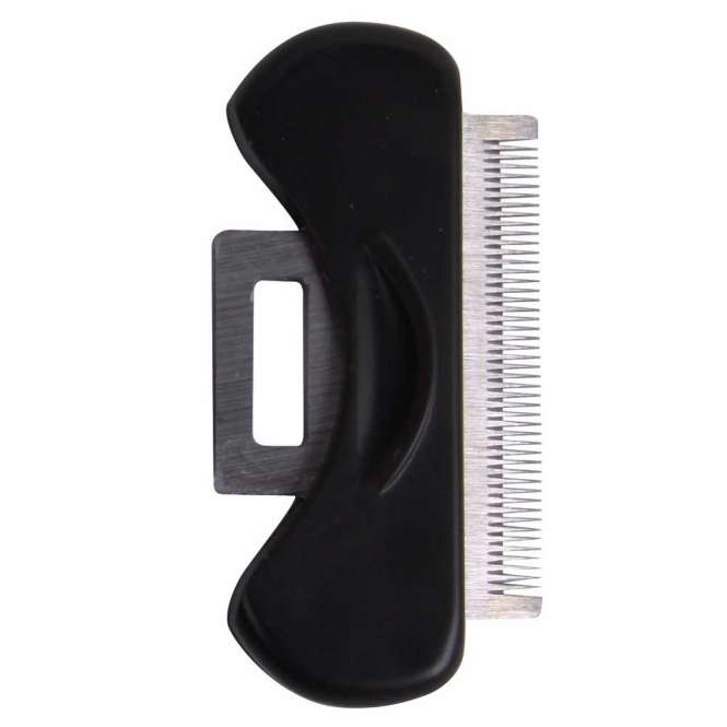 Der Striegelkopf lässt sich durch einen Schnappmechanismus am Griff einfach austauschen. Die Klinge ist aus rostfreiem Edelstahl.